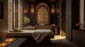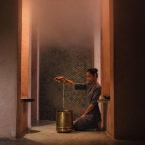Un gommage aux sels marins suivi d’un enveloppement à l’argile rose et d’un modelage nourissant à l’huile d’argan.